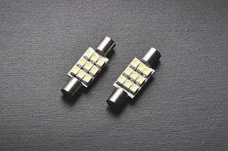 バイザー照明であるバニティランプ専用のLEDバルブキットです。純正に比べてLED独特のクールな雰囲気を車内にもたらします。また製品にはLED(SMDタイプ)を片側9個使用し、面発光による拡散を図った構造を採用しました。